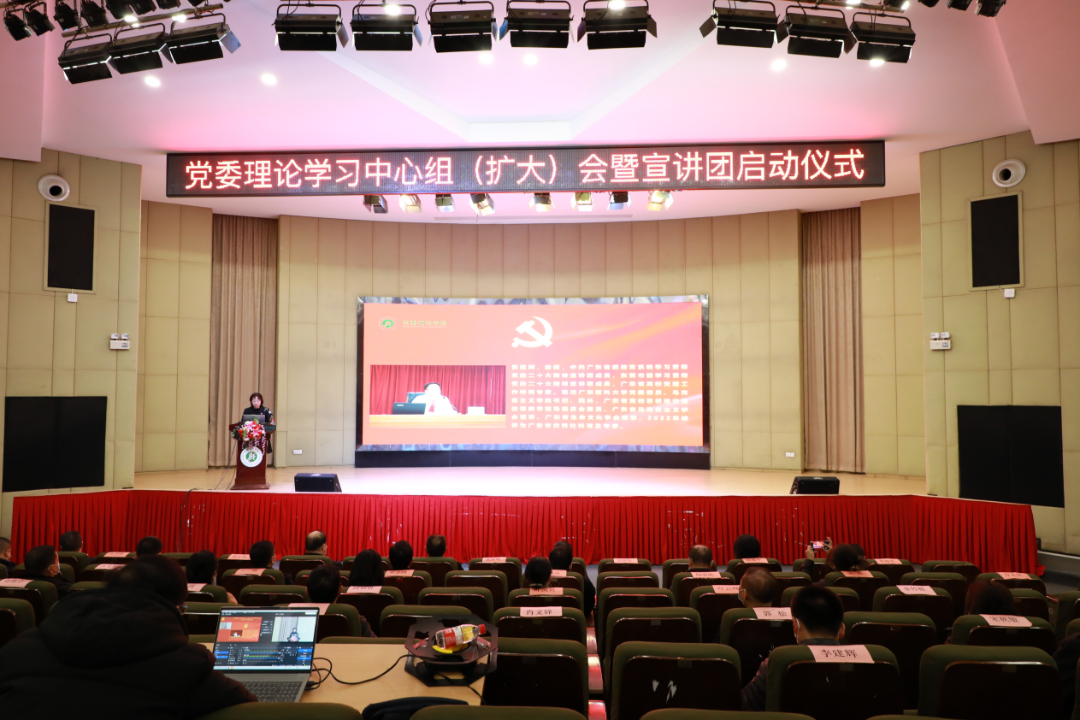 为深入学习贯彻党的二十大精神,进一步做好党的二十大精神宣讲工作,12月15日下午,伟德官网举行党委理论学习中心组(扩大)会议暨“学习贯彻党的二十大精神”宣讲团启动仪式。广东医科大学马克思主义学院院长黄祖辉教授应邀作主题为《奋进新征程的政治宣言和行动纲领——深入学习贯彻党的二十大精神》的宣讲报告。会议分主会场和分会场。主会场在学术报告厅,校领导、各职能部门、二级党组织负责人以及师生代表出席参加。各党总支和直属支部设立分会场,组织师生收看主会场直播。会议由党委副书记刘玉侠主持。