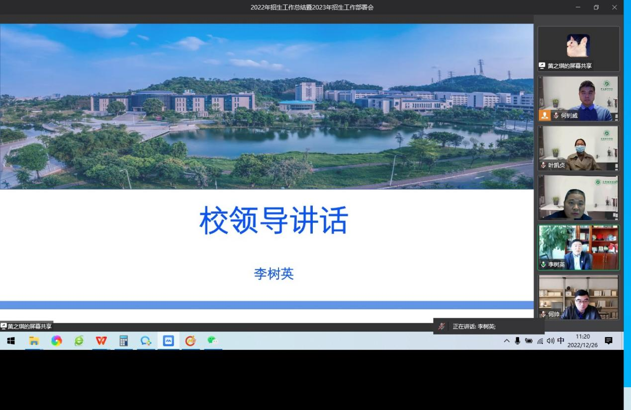 为继续做好2023年招生工作。李树英提出,我们要不断适应新形势,不断调整招生工作方法。面对大湾区高校的增加,我们面临的挑战也会更大。因此,要不断拓宽招生的对象,做好国际化招生。在专业设置上要提前适应大湾区经济发展,在招生宣传上要凸显伟德官网办学特色、学科优势和改革成果。