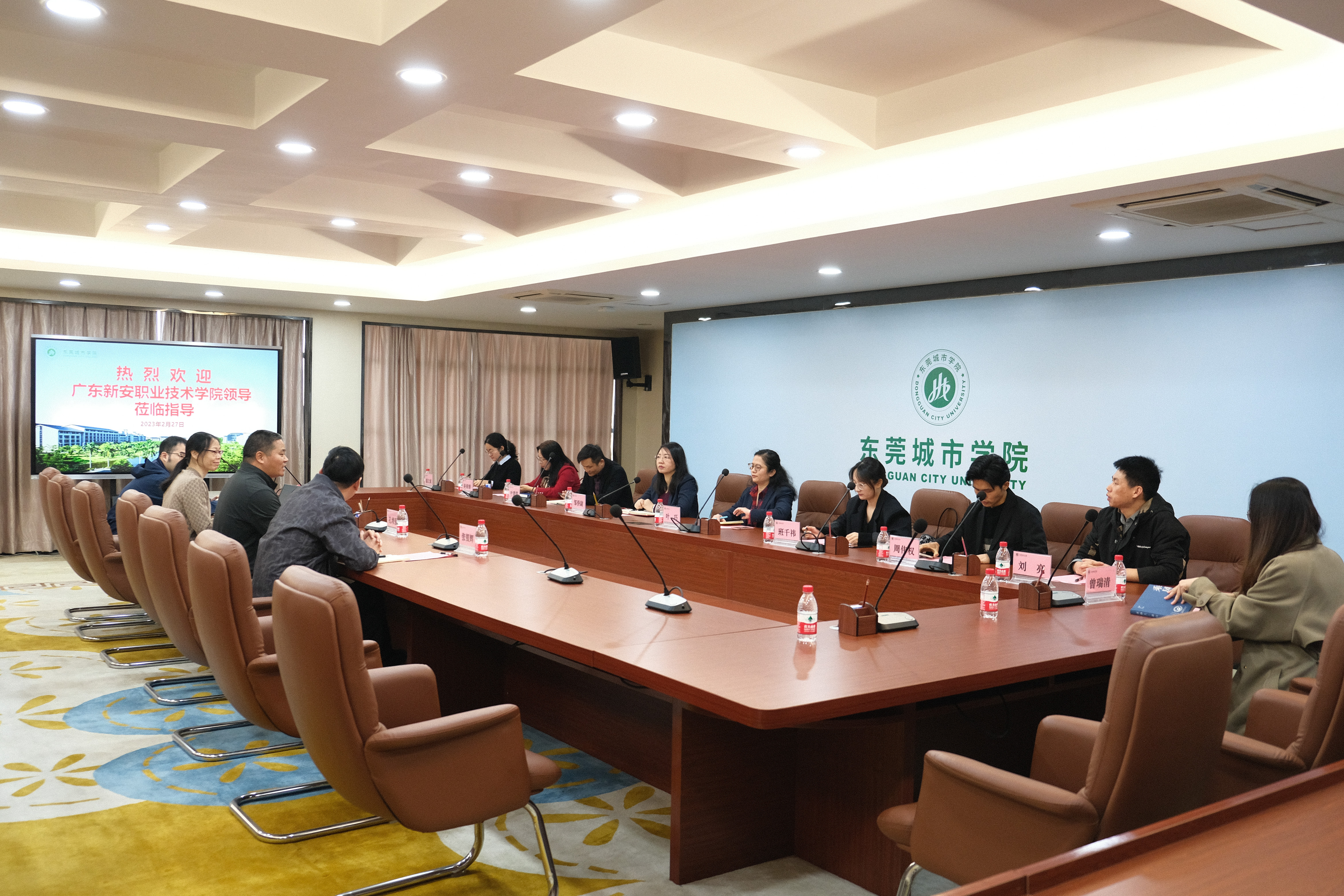 2月27日,广东新安职业技术学院党委委员、综合管理部部长邹侨尉一行9人莅临伟德官网,就迎接广东省法治测评工作检查工作进行了交流座谈。学校校长助理、学校办公室主任、法制办公室主任孔增强,学校办公室副主任叶凯贞等人接待了广东新安职业技术学院一行,并在六楼会议室举行交流座谈会。