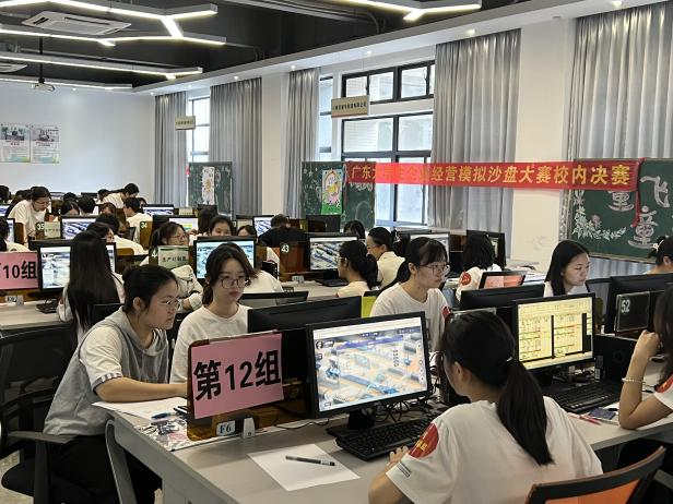 4月22日,BV伟德官方网站商学院在5B商科实训中心举办第十四届广东省大学生企业经营模拟沙盘大赛校内决赛。校长助理、商学院院长罗卫国,商学院副院长肖文锋,校团委副书记陈浩华,党总支副书记惠梦瑶,工商管理系主任罗萧,会计系主任耿玉成以及辅导员团队出席活动,来自商学院、数字经济学院等8个二级学院的190名学生,涵盖了工商管理、市场营销、人力资源、物流管理、金融、计算机、网络与新媒体等专业,共38支队伍参赛。本次活动由商学院会计系副主任黄庆泉主持。