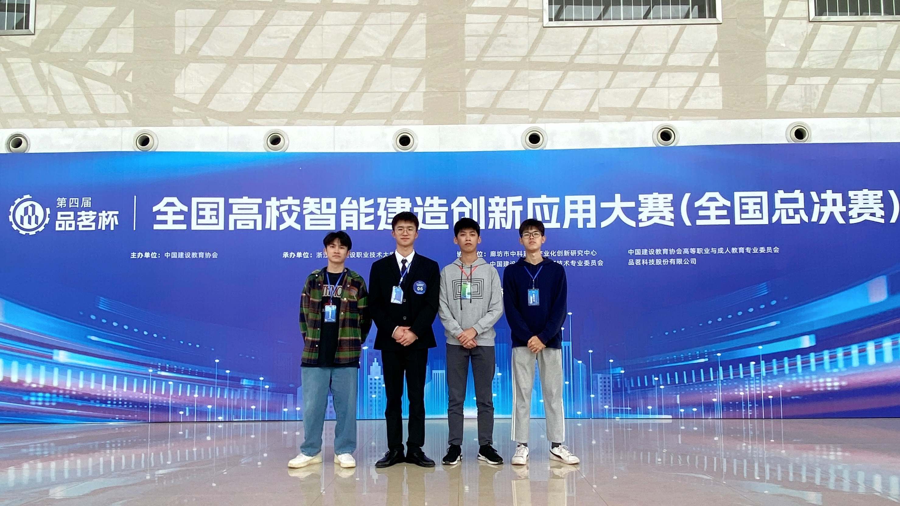 2023年4月22日,由中国建设教育协会主办的第四届“品茗杯”全国高校智能建造创新应用大赛在浙江顺利结束。本次比赛来自全国各地的304支队伍进入总决赛,由城建与环境学院肖红飞教授、陈春鸣老师领队,2021级土木工程专业学生饶逸鸿、黄永乐、龚镇涛,机器人专业陈俊安四位同学组成的团队首次参赛斩获智能建造管理创新赛项三等奖,为学校赢得了荣誉。