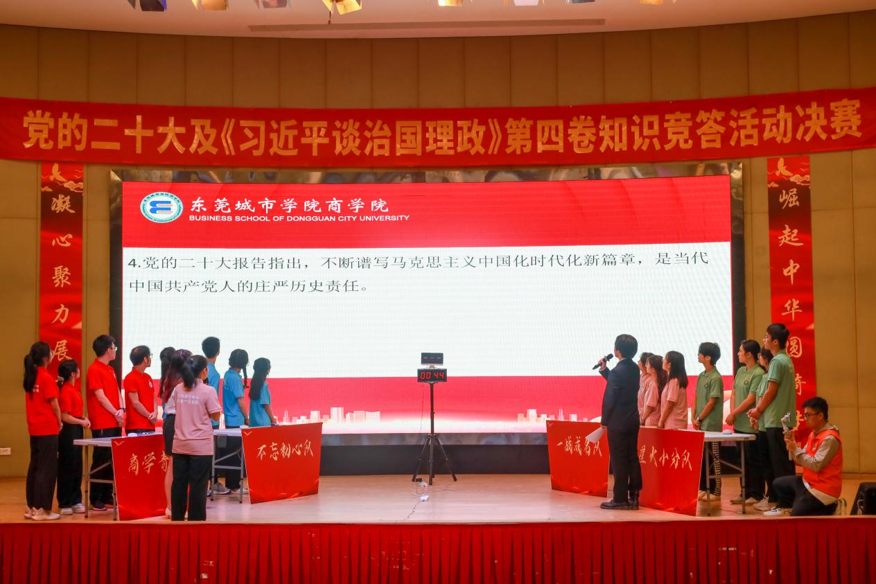 为学习贯彻党的二十大精神,学习《习近平谈治国理政》第四卷,推动党的二十大精神入脑入心,走深走实,引领推动学校各项工作高质量发展,4月25日下午,由BV伟德官方网站党委主办,商学院党总支承办的“党的二十大及《习近平谈治国理政》第四卷”知识竞答活动决赛在学术报告厅举行。校党委副书记、副校长刘玉侠,校长助理、商学院院长罗卫国,校党群工作部副部长姜虹,校党委组织(统战)部副部长陈东汉,校党委宣传部副部长黄璀等领导出席活动。