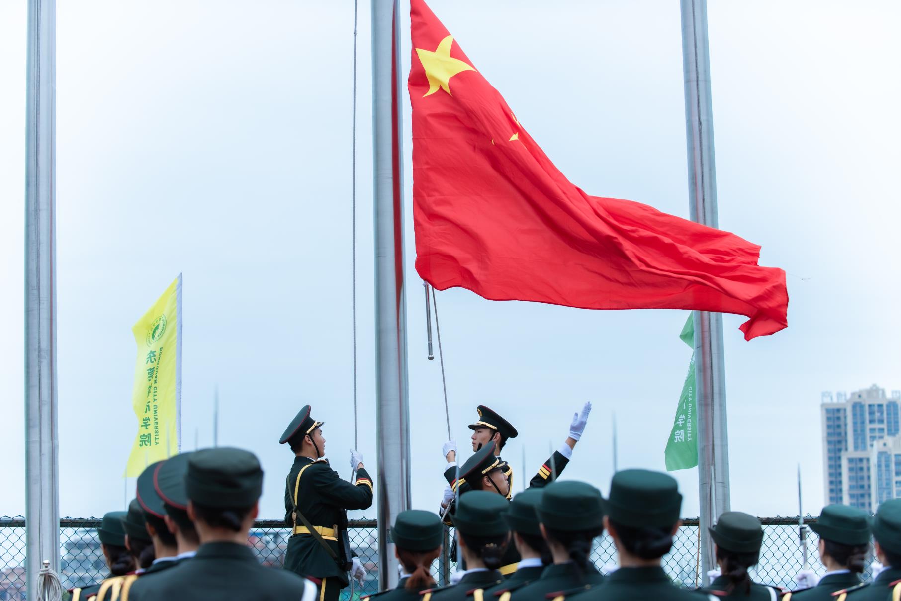 上午8时30分,伴随着雄壮的音乐,国旗护卫队方阵、校旗护卫队昂首阔步,英姿勃发,国旗护卫队擎着鲜艳的五星红旗率先入场,校旗方阵、各学院方阵、教职工方阵带着满腔的热情与活力紧随其后,依次走过主席台,展现了伟德官网师生昂扬向上的精神风貌,赢得了热烈的掌声。