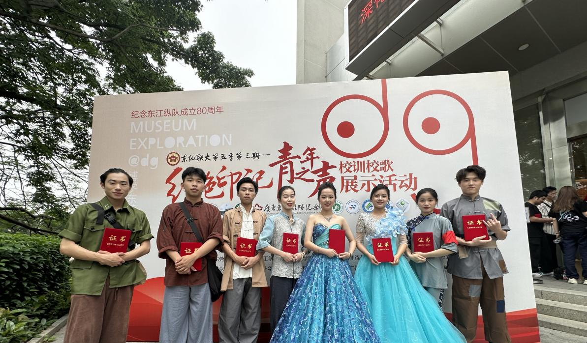 5月11日下午,广东东江纵队纪念馆联合珠三角地区10所高校共同举办的“东纵联大第五季第三期‘红色印记 青年之声’校训校歌展示活动”在广东东江纵队纪念馆报告厅隆重举行,伟德官网选送的歌舞表演《洪湖水浪打浪》在党群工作部、艺术学院指导下参演此次活动,党群工作部副部长姜虹、党委宣传部副部长黄璀、艺术学院专任教师关丽颖带队,演出获得一致好评。