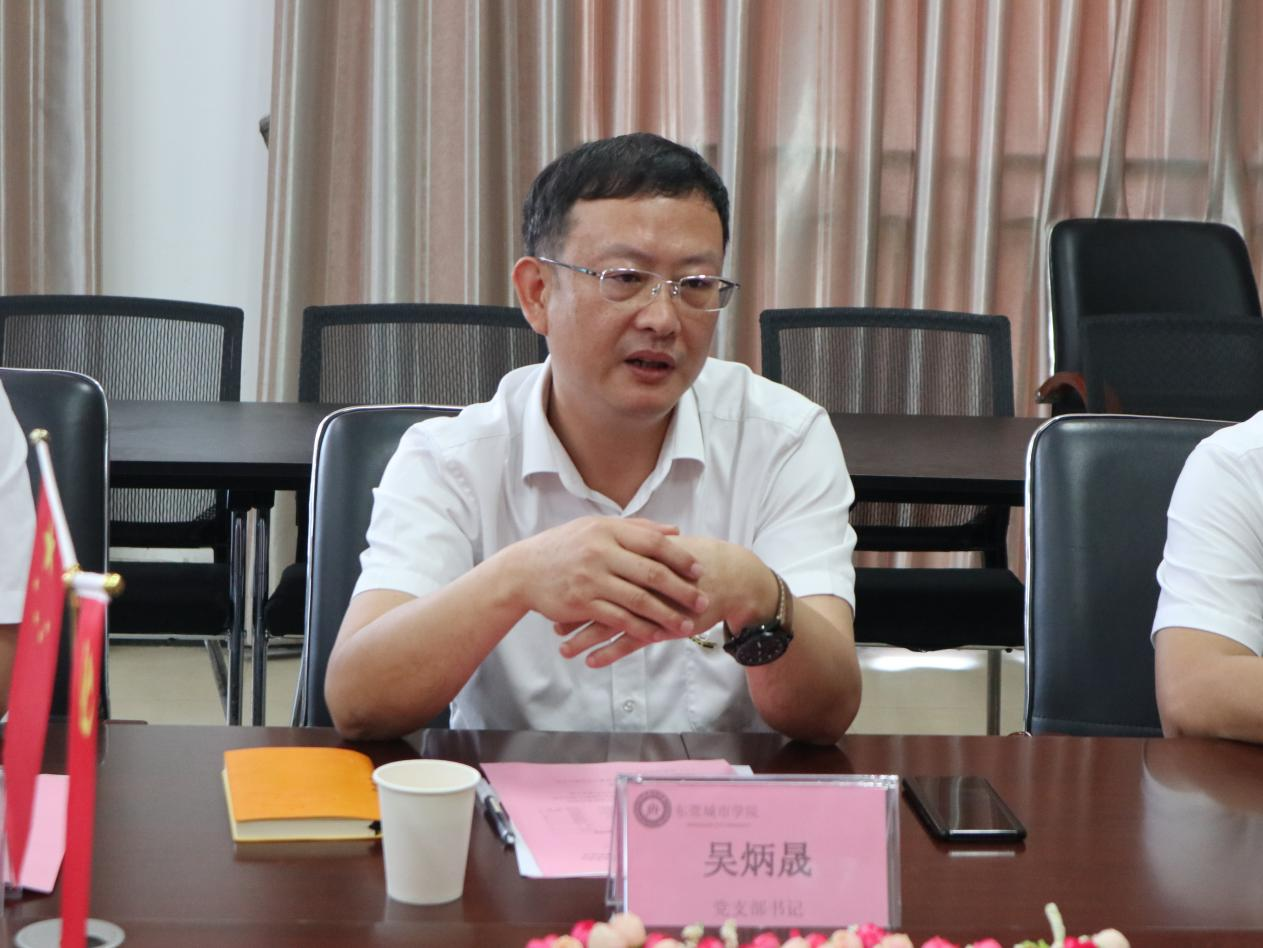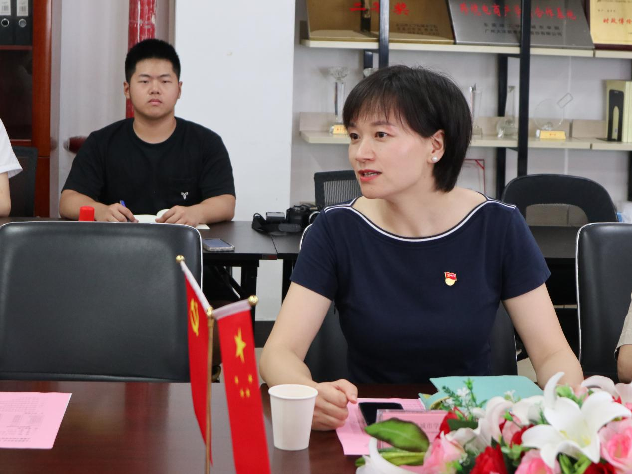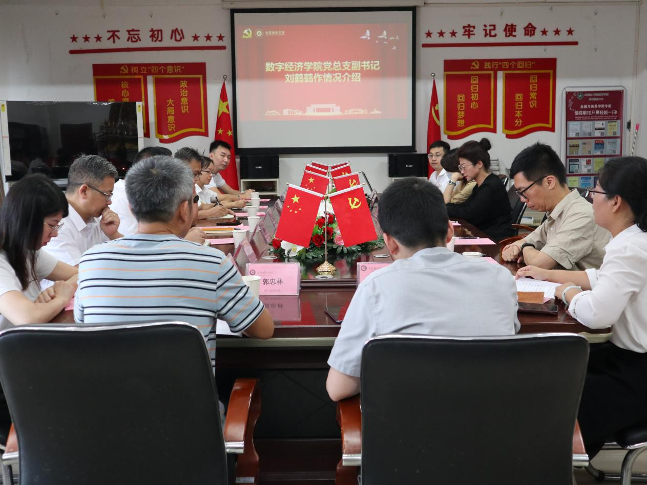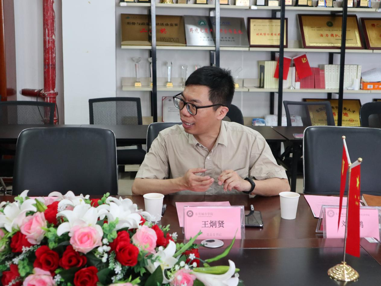 数字经济学院党总支书记王炯贤对吴炳晟书记一行七人的到来表示热烈欢迎,他表示此次数字经济学院党总支与横沥镇裕宁社区党支部开展结对共建是高校与社区进行合作、共同推进党建工作内涵式发展的重要举措。随后,数字经济学院党总支副书记刘鹤鹤介绍了近年来数字经济学院党总支党建工作的整体情况、工作模式的创新、党建工作品牌建设及所取得的成绩。
