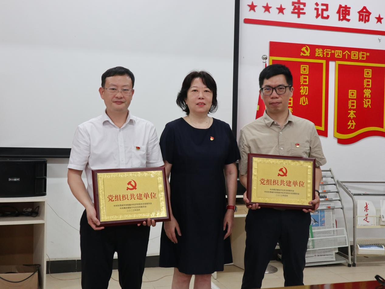 学校党委副书记刘玉侠为共建双方代表授牌,标志着数字经济学院党总支与横沥镇裕宁社区党支部的党建共建正式启动。