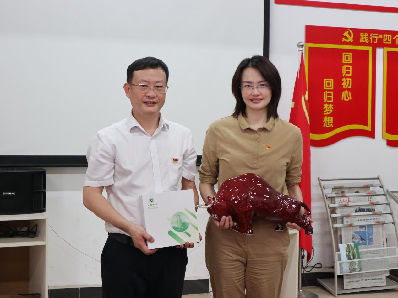 数字经济学院执行院长侯瑞瑞与裕宁社区党支部吴炳晟还互赠了纪念品。