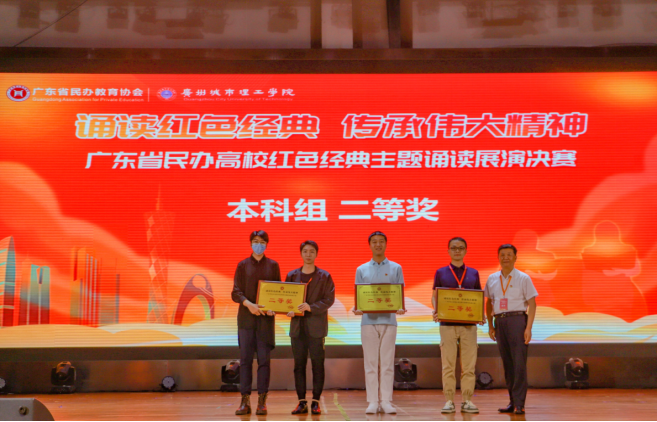 为深入学习贯彻党的二十大精神和习近平总书记关于青年工作的重要论述,组织广大青年学习红色经典、先进典型,弘扬爱国主义精神,增强民族自信心和自豪感,展现青年风采,赓续精神血脉,5月27日,广东省民办教育协会于广州城市理工学院学生活动中心举办“诵读红色经典,传承伟大精神”主题诵读展演决赛活动,伟德官网选送的参赛作品《诗颂百年风华》在党群工作部、马克思主义学院、艺术学院指导下参加此次展演决赛,由党群工作部副部长姜虹、党委宣传部副部长黄璀带队,获得本科组二等奖。