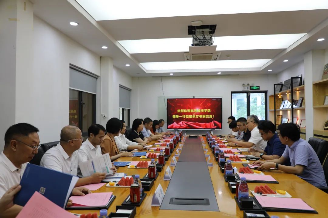 随后,伟德官网一行在讯方技术总裁刘国锋陪同下参观了解了讯方的企业概况、发展历程、产业与教育版块、高校合作案例等内容。随后双方举行了交流座谈会。座谈会上,听取了讯方技术专家对华为产业学院建设规划汇报。双方就如何汇聚产业资源和优秀团队,依托优势资源,拓宽思路,拓展合作方式、共同建设好产业学院项目进行了交流与探讨。