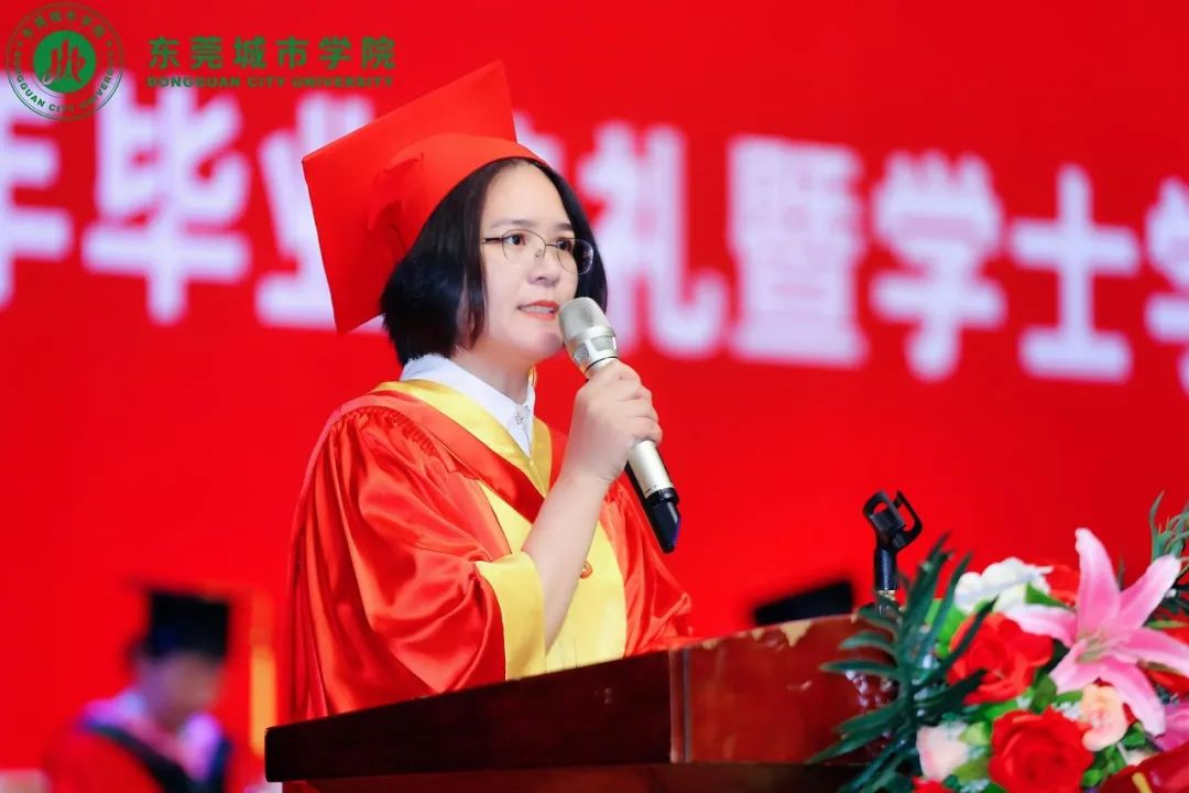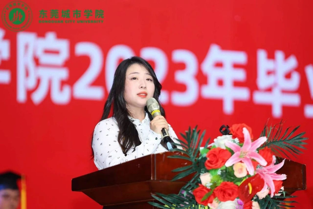 语言文化学院教师代表舒俊婷在毕业典礼上发表了简短而温馨的祝福。她表示,毕业是一个人生的重要转折点,意味着告别校园,迎接未来的挑战和机遇。她希望所有毕业生能够顺利地走出校门,踏上新的人生征程,刻苦努力,勇于拼搏。在工作和生活中,要保持积极向上的心态,勇于迎接挑战,不断学习和提高自己的能力。最后,她再次祝愿所有毕业生前程似锦,生活幸福,实现自己的理想。