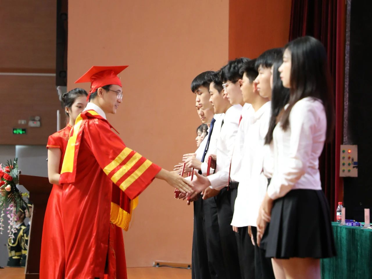 学校校长陈明向毕业生代表颁发了毕业证书。