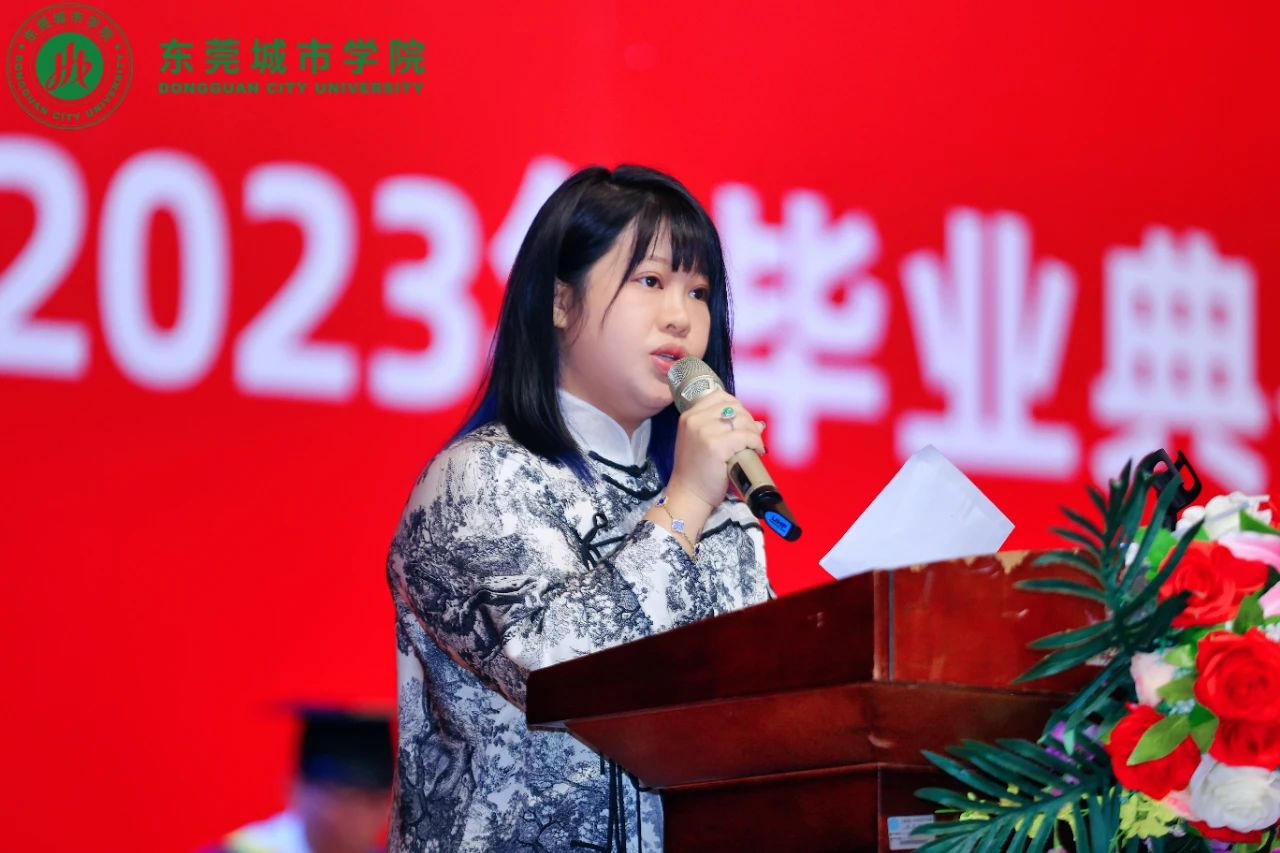 艺术学院优秀校友代表赖欣怡、语言文化学院优秀校友尹嘉蔚在毕业典礼发言中,他们回忆起在校期间的点滴回忆和成长经历,感谢母校为他们提供的优良学习环境和丰富的学术资源。同时,他们也希望学弟学妹们能够珍惜现在的学习机会,锻炼自己的能力和素质,为将来的发展打下坚实的基础。最后,他们再次祝愿城院发展越来越好,祝学弟学妹们前程似锦!