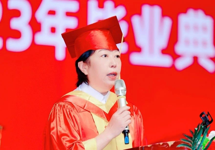 学校校长陈明发表致辞。他代表学校向全体毕业生表示热烈的祝贺和祝福,向勤勉奉献的老师们、向关心学生成长、支持学校发展的家长亲友和社会各界朋友表示感谢!