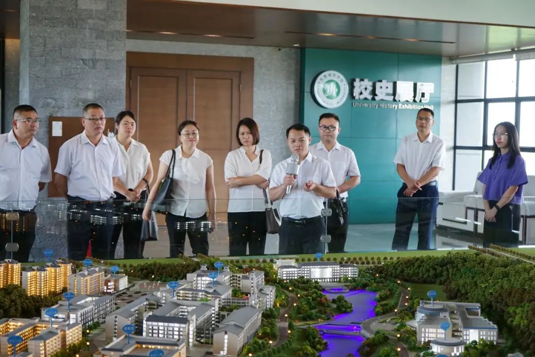 学校领导班子校长陈明、副校长李海冬接待了校长学员,带领研修团依次参观了学校沙盘、教学楼、综合馆等校园建筑群,详细介绍了学校发展历程、办学特色、学科专业建设等情况。