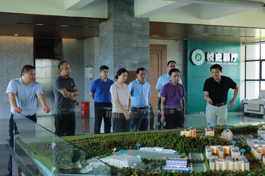 会前,广东省教育考试院副院长许顺兴一行在方伟华副校长的陪同下参观了学校沙盘。