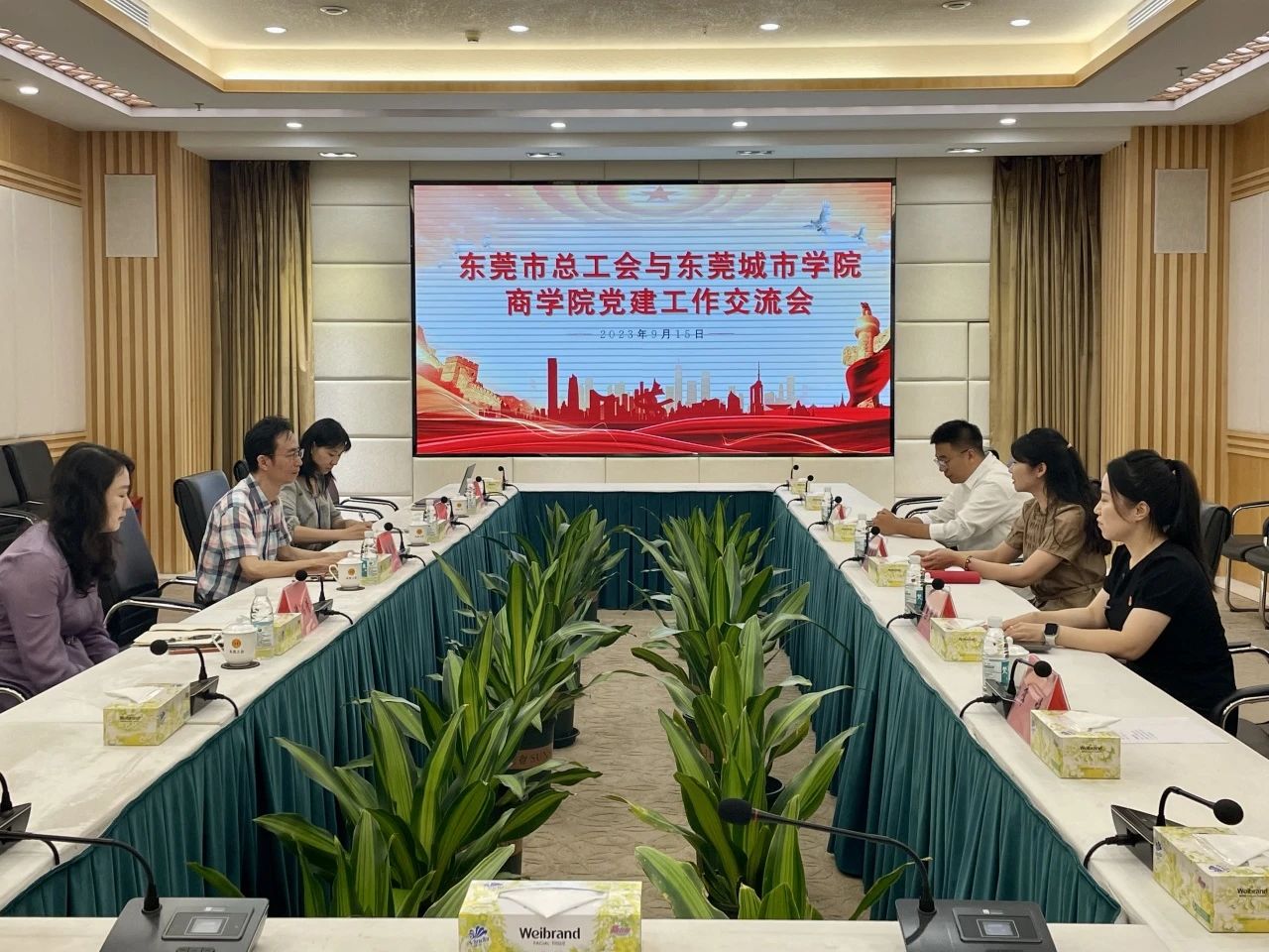 为进一步激活商学院党建工作活力,提升学院党建工作质量,构建“资源共享、优势互补、互相促进、共同提高”的党建工作新格局,9月15日上午,伟德官网商学院与东莞市总工会开展党建工作交流会。东莞市总工会机关支部副书记韩卓华、党廉办冯湘华、游瑞清,伟德官网商学院党总支书记李梦丹,党总支副书记惠梦瑶及学生党支部书记岳帅参加会议。会议中双方进行深入交流,气氛融洽,共同探索拓宽党建发展的“红色朋友圈”。