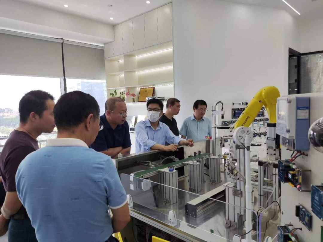 签约仪式后,牛乐乐总经理带领大家参观了公司环境,研发总监宁工向学院领导介绍了信盈达的部分自研产品、设备与教学仪器。