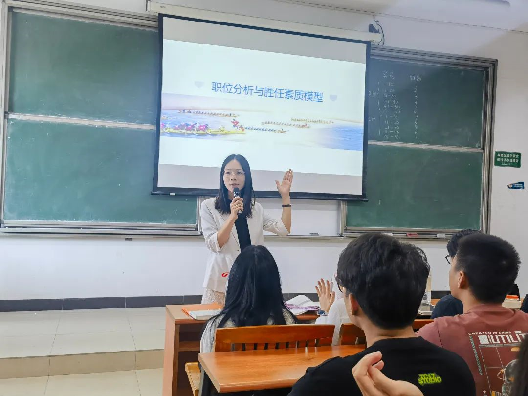 最后,吴雪冰经理结合企业实践,与同学们分享了职位分析的具体应用,以及数智化发展趋势下人才标签的实践应用。她强调,同学们要多参与社会实践,而不是仅仅局限于课堂和书本,要在实践中获得,在实践中历练,在实践中成长。