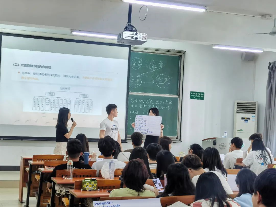 近日,伟德官网商学院于7A408和7A417开展《人力资源管理概论》课程的协同教学。本次特邀东莞市新奥燃气集团人力资源部经理吴雪冰作为主讲人。2022级市场营销(专升本)1-4班共210名学生参与了本次协同教学活动。吴雪冰经理结合工作实践,以职位分析与胜任素质模型为主题进行授课。
