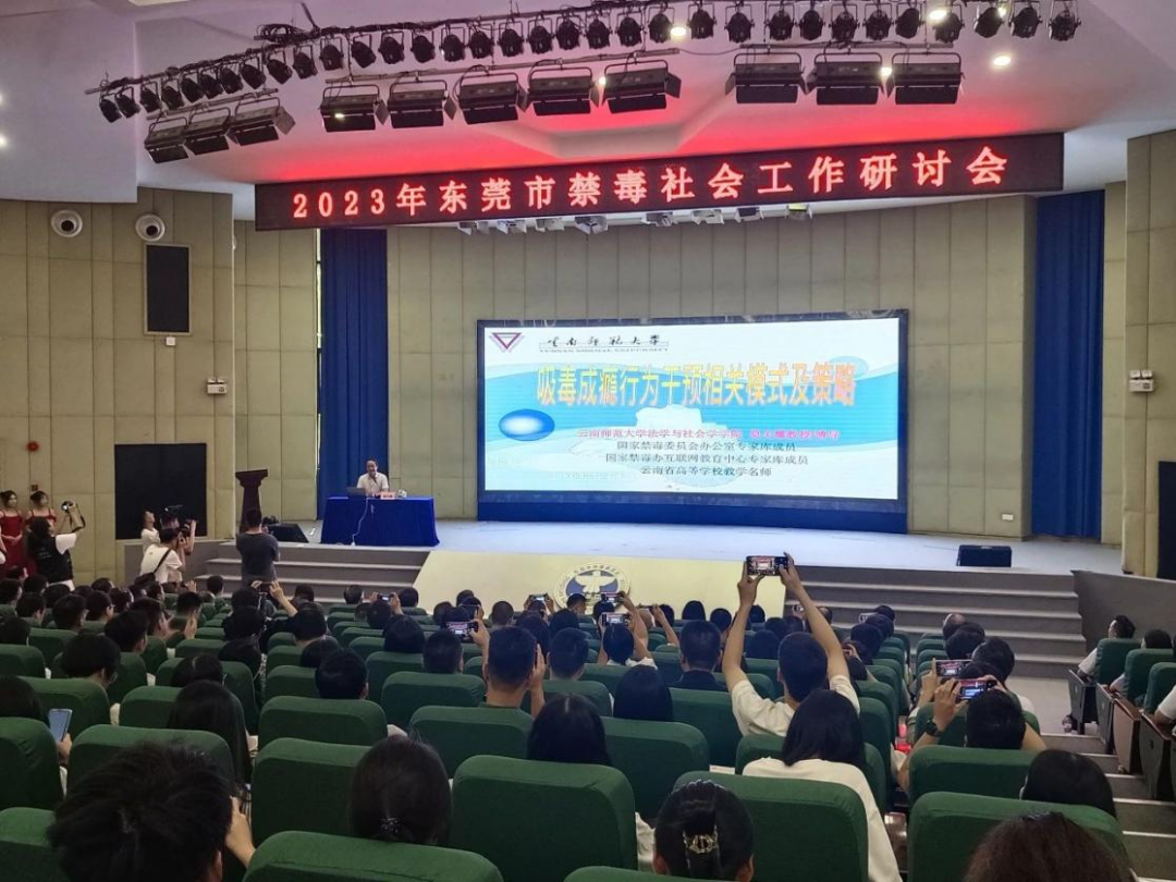 为加强社会工作专业建设,创新校政行业协同育人模式,提升社会工作人才培养质量,11月5日上午,由BV伟德官方网站承办的2023年东莞市禁毒社会工作研讨会在BV伟德官方网站学术报告厅顺利举行。国家禁毒办专家库成员、中国药物滥用防治协会理事莫关耀教授,省禁毒办副主任、省公安厅禁毒局副局长冯立洲,市禁毒办主任、市公安局副局长潘建军,市民政局副局长、二级调研员罗观云,市妇联副主席张琦,学校常务副校长方伟华、副校长周庆,学校教务处处长、学科建设办公室主任杨勇虎,法学院院长刘红、党总支书记江小卫、副院长李阳桂,以及省禁毒办、市禁毒办、市民政局、团市委、市妇联、各镇街禁毒办领导,东莞市各高校教师代表、禁毒社工机构代表,禁毒社工代表和社工专业学生约300多人参加了会议。研讨会包含禁毒专题讲座、《东莞市禁毒社会工作手册》发布、圆桌论坛、问答互动等环节。会议由法学院付佳荣、徐媛媛老师共同主持。