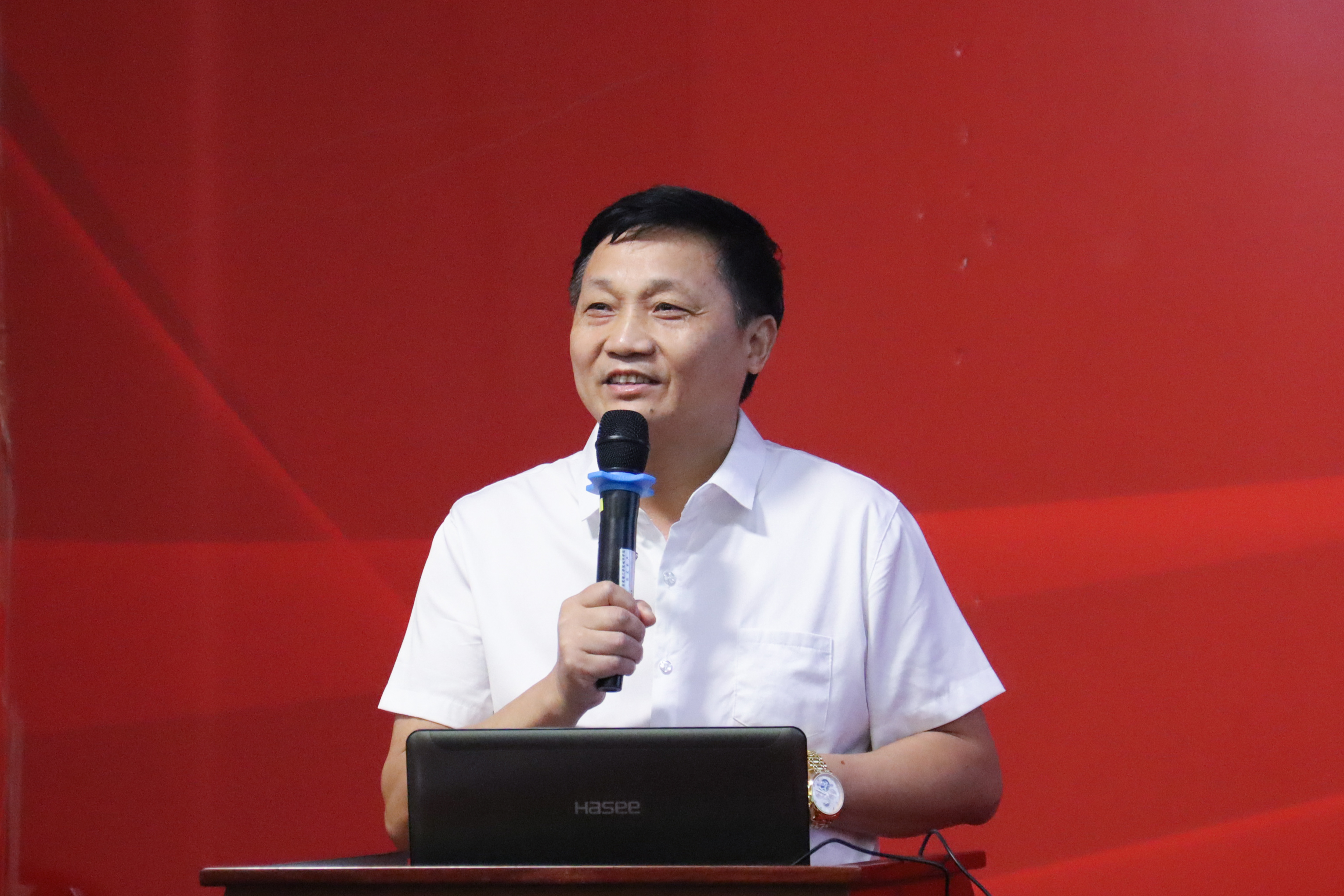 谭贵新教授发表了主题为《让思维点亮课堂》的演讲,在“构建思维教学范式、构建思维课堂文化、构建思维评价方式”三方面提出教师在课堂上应推动学生独立思考,加强学生自我意识和学习能力。