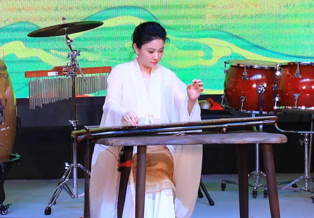 手持古琴,轻抚琴弦。《流水》琴音如泉水流淌,古朴而动人,将观众们带入了一个静谧而美丽的世界。扬琴、琵琶、古筝三种乐器共同奏响下的《弹词韵》细腻而柔和,仿佛诗人笔下的画面在耳边跳跃,使人心境渐次开放,沉浸在无限的美丽氛围中。陕北民歌《信天游》在中阮、笛子、鼓的共同奏响下流露出浓厚的黄土高原气息,凸显出陕北大地的豪迈和热情。