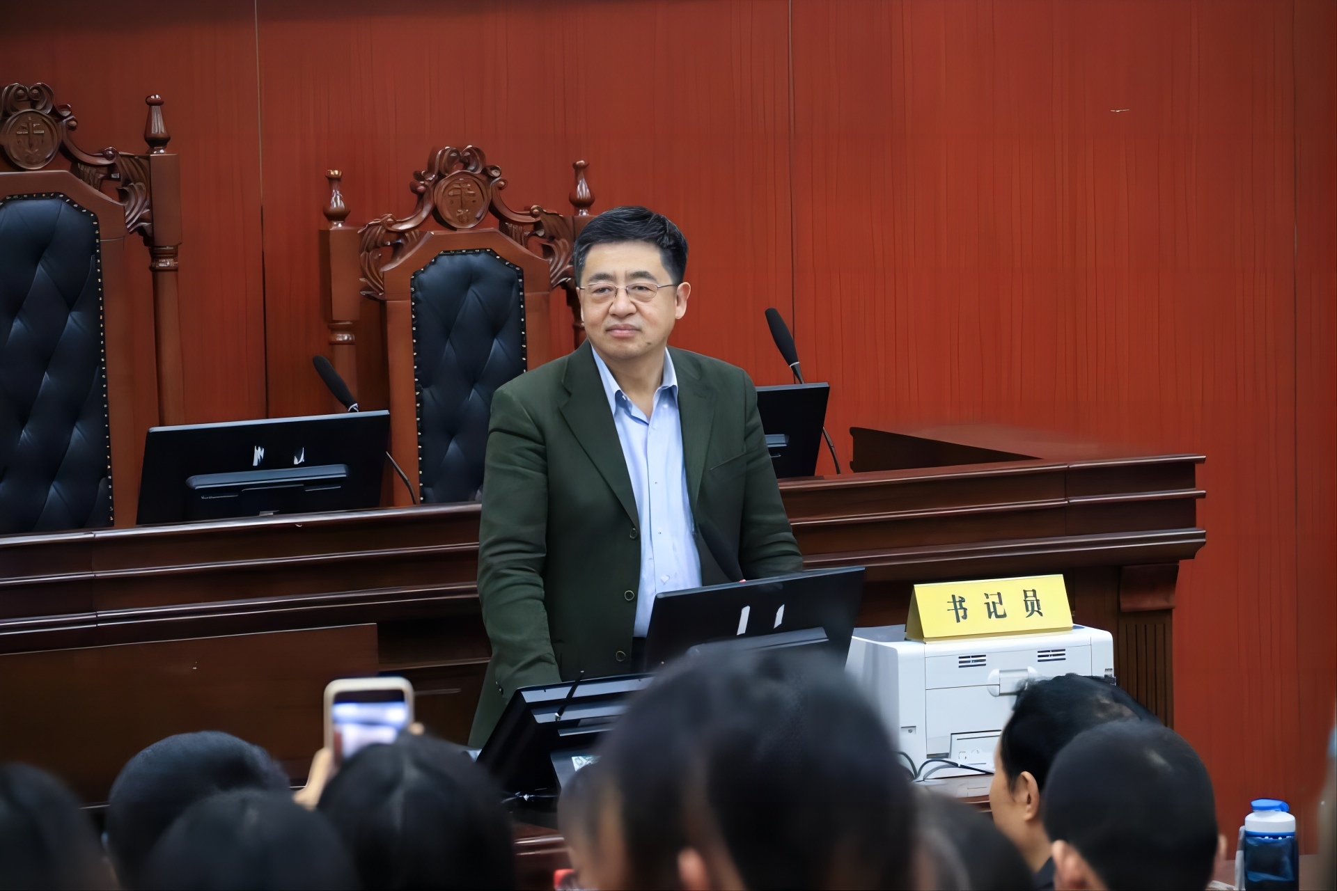 12月7日下午,中国政法大学许身健教授应邀为伟德官网法学院师生在法学院智慧模拟法庭作了题为“法律职业伦理精要”的学术报告。报告由伟德官网法学院主办,法学院院长刘红教授主持,校长陈明参加了报告会,法学院教师和学生聆听了报告。