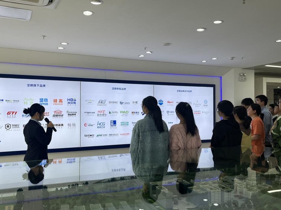 接着在尚天婧老师和工作人员的带领下,同学们实地参观了坚朗展厅,从四楼到七楼,产品展厅陈列展示了从螺丝钉到集成智能家居等坚朗产品在工作人员的介绍下,同学们仔细观察多种产品,并亲自操作,使得坚朗公司的“稳健、务实、高效”在同学们的眼中更加具象化。参观结束后,尚老师邀请坚朗创新班的同学们进行心得分享。