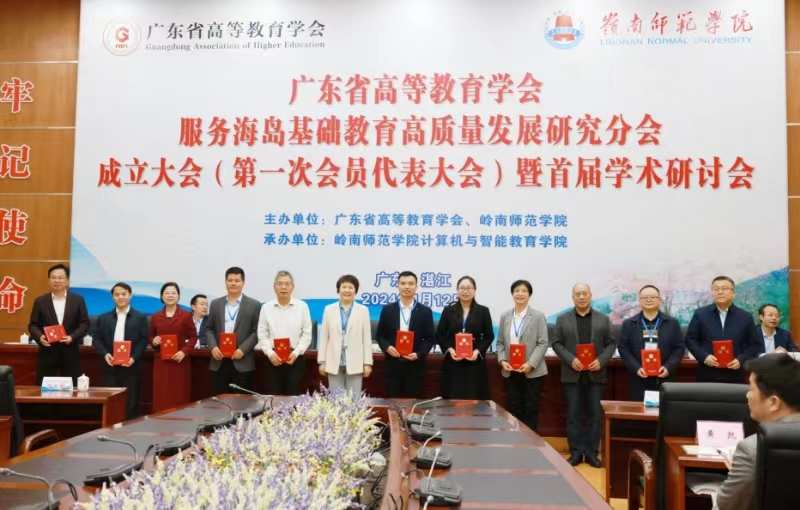 1月12日, 广东省高等教育学会服务海岛基础教育高质量发展研究分会成立大会暨首届学术研讨会在岭南师范学院召开。广东省高等教育学会常务副会长汤贞敏研究员、秘书长贺义梅,岭南师范学院党委书记兰艳泽、校长阳爱民、伟德官网副校长李海冬等出席会议。来自省内沿海高校、教研机构、中小学、幼儿园、企业的有关领导、专家学者、教师近110人参加会议。