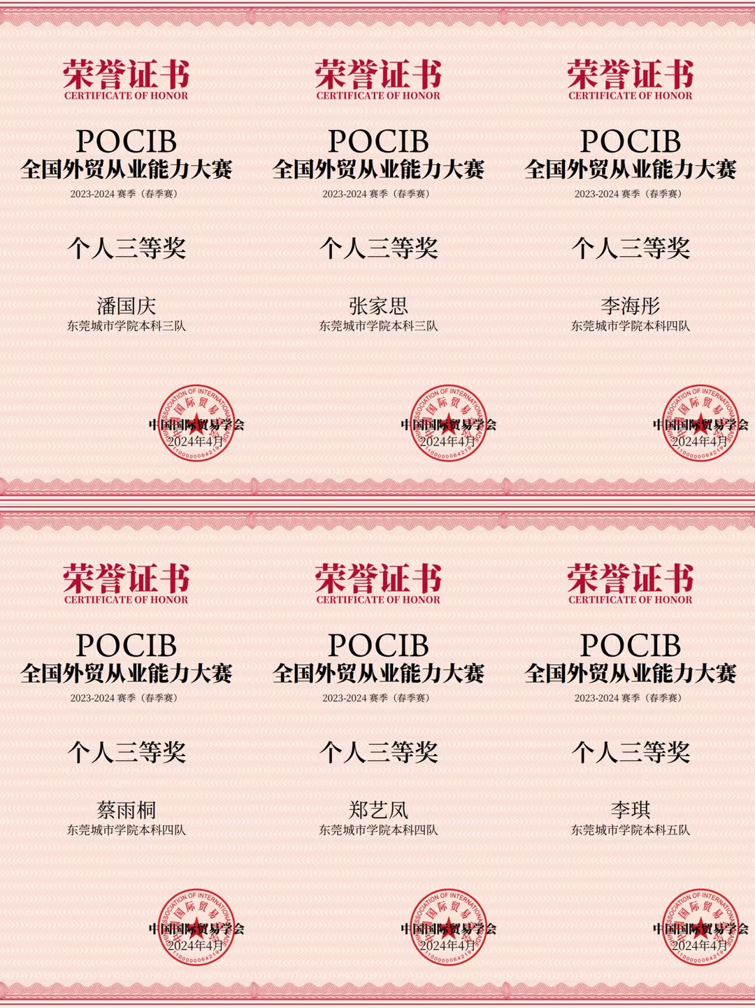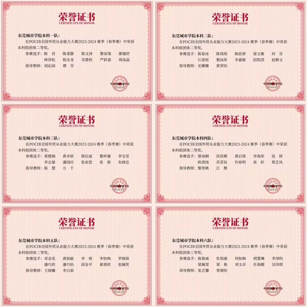 2024年4月29日,第十三届POCIB全国外贸从业能力春季赛圆满结束,伟德官网会计与金融学院共计六支参赛队伍,取得了团体二等奖5项、三等奖1项、个人三等奖15项的优异成绩,二等奖获奖比率创伟德官网历年参赛以来新高。