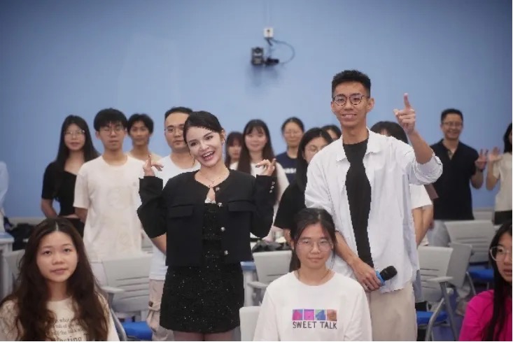 最后,商学院数字营销系副主任江黎老师发言。在讲话中,江黎老师为大家详细介绍了商学院电商直播基地及校企合作产业融合综合实践基地。她表示,商学院将发挥产教结合优势,整合校企多方资源,为平台单位、同学们提供更专业、更系统、更全面的电商主播比赛培训,助力同学实现创业梦想,取得更好的成绩。