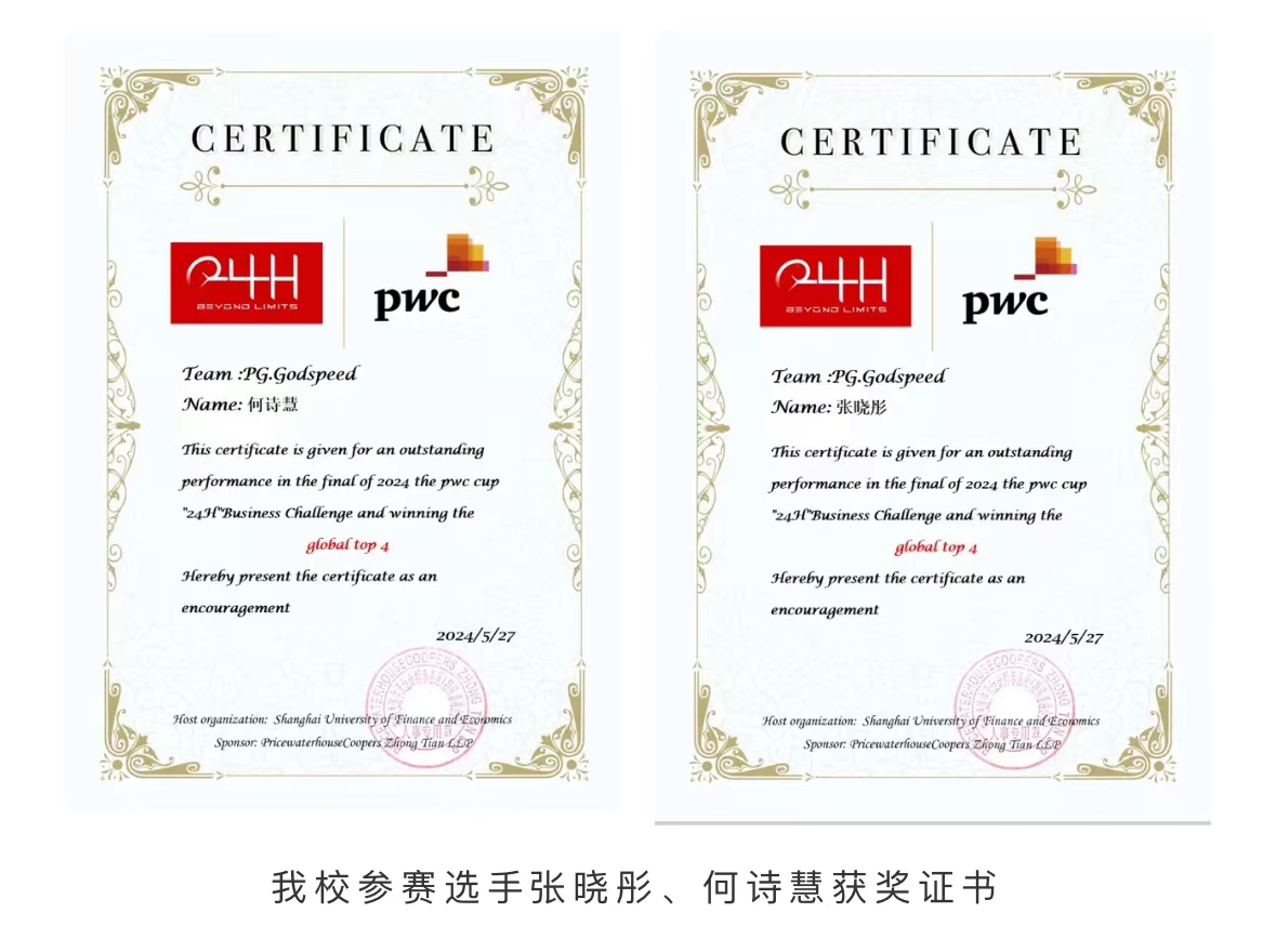 近日,由上海财经大学会计学会和普华永道中天会计事务所联合举办的2024普华永道杯“决战24H”商业挑战赛落下帷幕。本次大赛吸引了全国多所高校的近1000支队伍参赛。伟德官网Godspeed队伍入围全国总决赛(全国仅12支队伍入围)并获得了Global Top4的优异成绩。