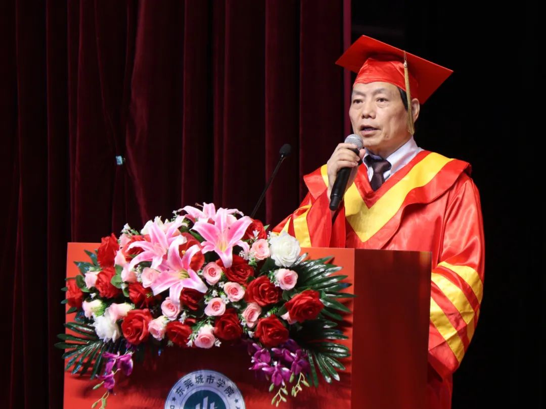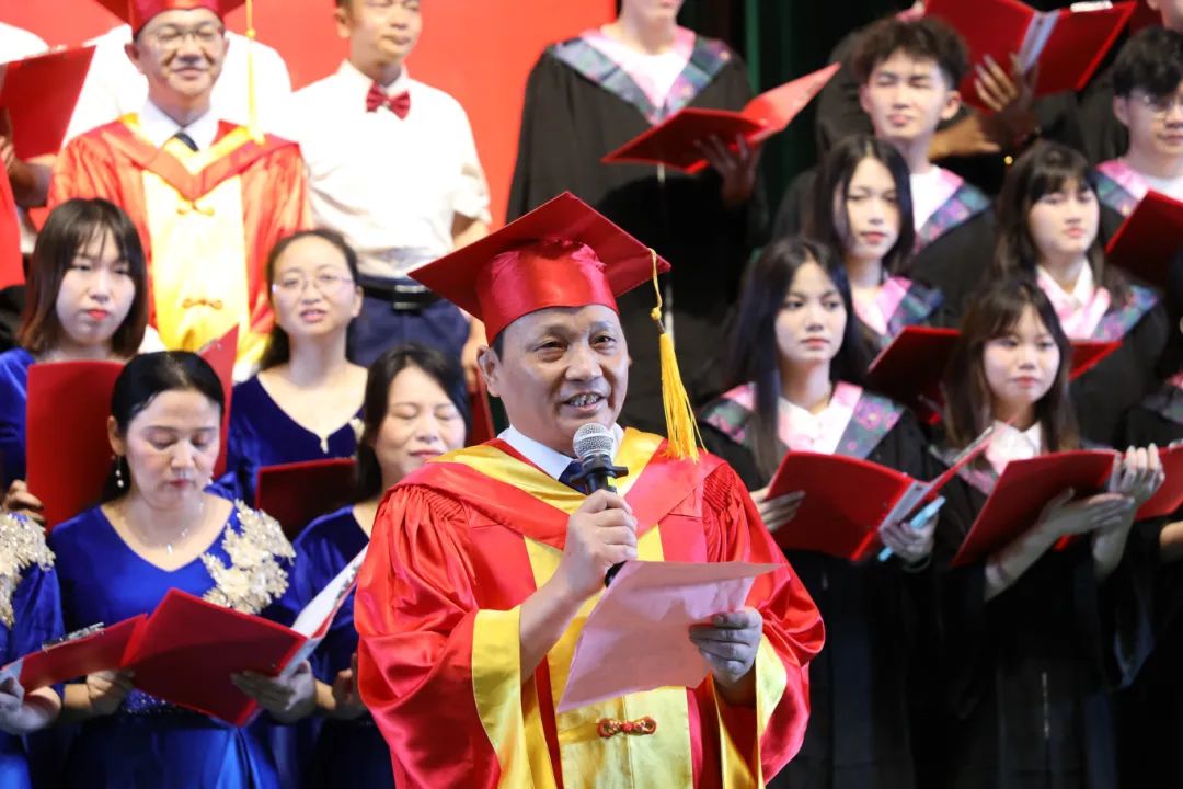 今年10月,学校将迎来建校20周年华诞。城市学院的20年,筚路蓝缕,栉风沐雨,一路艰辛,一路凯歌,实现了学校的跨越式发展,从最初200余人的在校生规模发展到现在的23000多名学生,二十年来,共培养各类人才8.6万余人,为东莞、为广东的社会经济发展作出了积极的贡献。城市学院的20年,因为一届届城院学子恪守“厚德务实,知行合一”、砥砺奋斗而不平凡。一路走来,这所年轻的学府扎根热土、先行探路,注定成为所有新老城院人的牵挂和骄傲!他希望2024届的毕业生们一是要有坚定的信念;二是要有坚强的决心;三是要有坚守的恒心。他希望同学们不忘初心,牢记使命,发扬“厚德务实、知行合一”的校训精神,大胆勇敢的去拥抱属于自己的广阔天地,去书写属于自己的精彩篇章。随后,举行学士学位授予仪式。