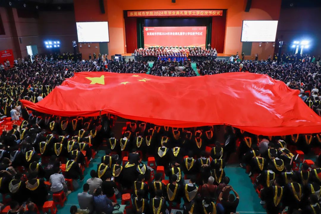 随后,毕业典礼在高昂的国歌声中拉开序幕,全体师生庄严肃立,高唱中华人民共和国国歌。·校长陈明向毕业生代表颁发毕业证书。副校长康贤刚宣读了“立志奖”表彰决定。2024年,张钒等64名应届毕业生奋发图强、锐意进取,考取境内外知名高校的硕士研究生,为鼓励广大城院学子向他们学习,授予他们“立志奖”。