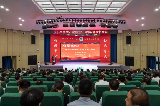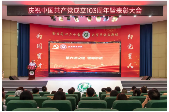 6月27日下午,伟德官网在学术报告厅举行庆祝中国共产党成立103周年暨表彰大会。学校党政领导、党委委员、行政教辅单位负责人、二级学院院长,二级党组织书记、副书记,优秀共产党员师生代表、党务工作者及全体教工党员参加大会。大会由党委办公室主任姜虹主持。