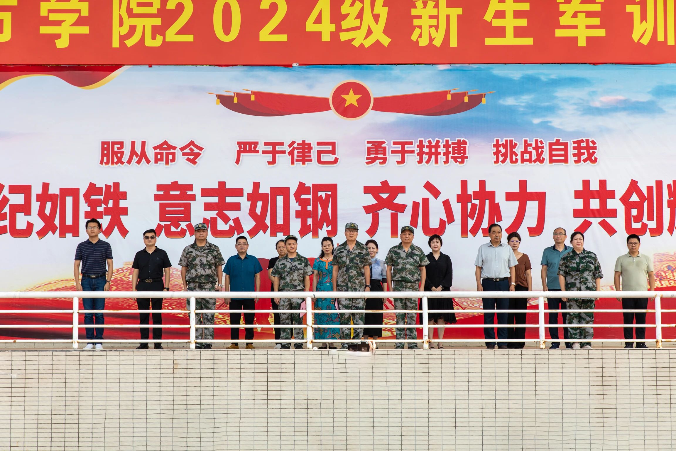 二、刻苦训练,磨砺意志。军训是一场对身心极限的严苛试炼,希望同学们用军人的标准雕琢自我,磨砺出过硬的军事素质与严明的纪律作风。