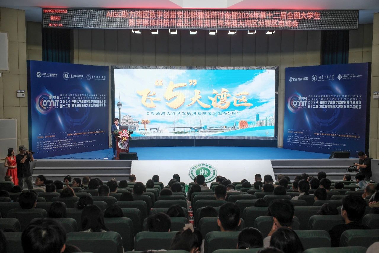为进一步推动高校智能媒体类人才教育教学改革,推动专业建设与教学质量提升,借助AIGC等前沿技术,优化教育内容、丰富教学形式,提升学生的综合素养与创新能力,提高人才培养质量,9月22日,由中国人工智能学会、全国大学生数字媒体科技作品及创意竞赛组委会主办,由伟德官网和广东工业大学、澳门科技大学、香港理工大学共同承办的“AIGC助力湾区数字创意专业群建设研讨会暨2024年第十二届全国大学生数字媒体科技作品及创意竞赛粤港澳大湾区分赛区启动会”在伟德官网学术报告厅举行。来自中国传媒大学 、北京印刷学院、广东工业大学、暨南大学、广州大学、佛山大学、广州美术学院、贵州民族大学、仲恺农业工程学院、广州航海学院、肇庆学院、惠州学院、珠海科技学院等40所省内外知名高校,12位国家和省教指委专家、百名学者,齐聚城院。