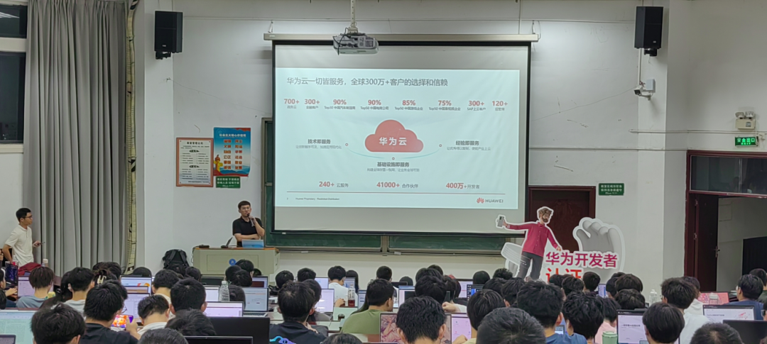 往年,人工智能学院发动近千名学生参加华为云开发者认证宣讲,618名同学通过认证考试,极大激发了同学们学习新一代人工智能技术的热情,部分同学还受邀参观了华为欧洲小镇,拓宽了视野,并在内心埋下了高端就业、服务国家的种子。