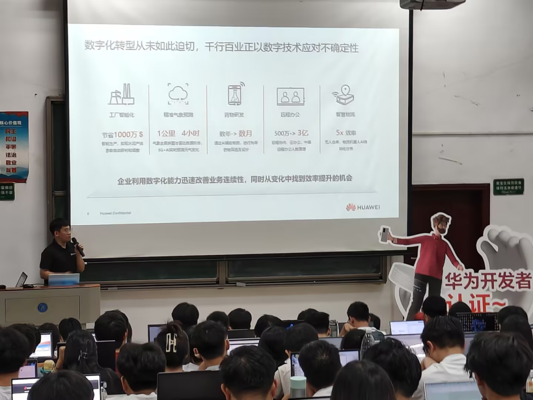 活动现场,华为云专家向同学们介绍了2024华为开发者大赛的赛事情况。本次大赛面向具备应用软件开发能力的组织、企业或个人,开设应用创新和算法挑战两大赛道,其中,广东赛区应用赛道聚焦昇腾AI、鸿蒙生态、国产工业软件创新以及通用华为云服务应用四大核心领域,鼓励参赛者基于华为云相关技术,结合自身业务场景,探索具有创新性、实用性、原创性的解决方案。