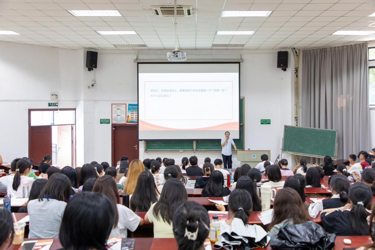 10月8日,学校校长陈明走上讲台,以“在全面深化改革新征程中激发奋进力量——学习贯彻党的二十届三中全会精神”为主题,为24级会计专业的学生上了一堂生动的思政课。