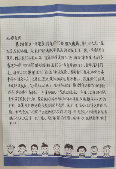在十多年的教学生涯中,陈孔艳老师坚持"用欣赏的目光看待学生,用宽容的心态面对学生"的教学理念。她视学生为个性迥异的幼苗,不仅欣赏他们各自的天赋和潜力,更以理解与包容的雨露滋润他们,帮助他们面对学习生活中的风风雨雨,寻找克服困难的解决之道。因此,无论是在课堂上还是竞赛的讨论中,她鼓励学生勇于表达自己的想法,并积极给予反馈,让学生们感受到一种轻松而愉悦的氛围。