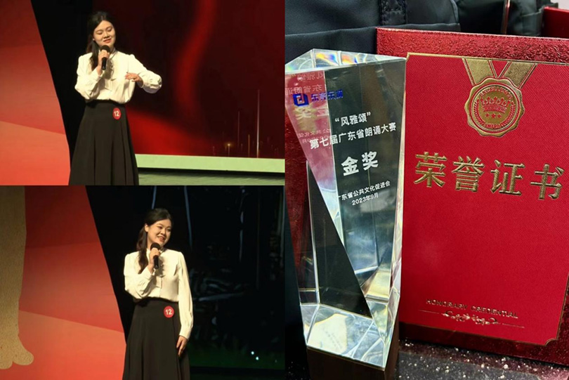 在东莞赛区初赛的激烈角逐中,仅有的两个晋级名额备受瞩目。新传媒与艺术学院21级表演专业蒋青恒同学作为该赛区唯一的学生代表,置身于30余位强劲对手的重重包围,却毫无惧色。她凭借深厚扎实的表演功底、精妙出色的语言表达,以别具一格的演讲视角切入主题,用饱含真挚的情感进行演绎。其现场表现深深打动评委,成功突围。此次获奖也并非偶然,早在去年广东省第七届“风雅颂”朗诵大赛中,蒋青恒就凭借深厚的语言艺术造诣荣获金奖。今年转战演讲赛场,依然风采不减,持续向着冠军宝座发起强有力的冲击,在这场汇聚全省精英的演讲大赛中留下了属于自己的深刻印记,也为BV伟德官方网站及东莞赛区争得了荣耀金奖。