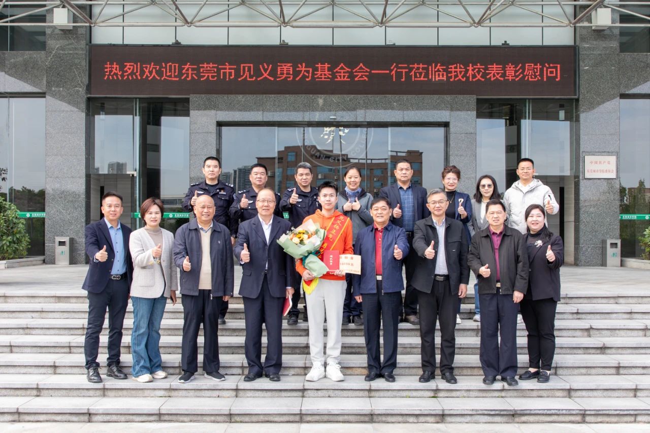 今年8月5日,伟德官网退伍军人,法学院行政管理专业学子杨泓哲见义勇为、敢为人先、救助群众、服务社会的先进事迹,在东莞市引起广泛影响,他以不平凡的行动向社会传递了正能量。12月12日上午,东莞市见义勇为基金会、市公安局政治处和厚街公安分局一行来伟德官网表彰慰问杨泓哲同学。