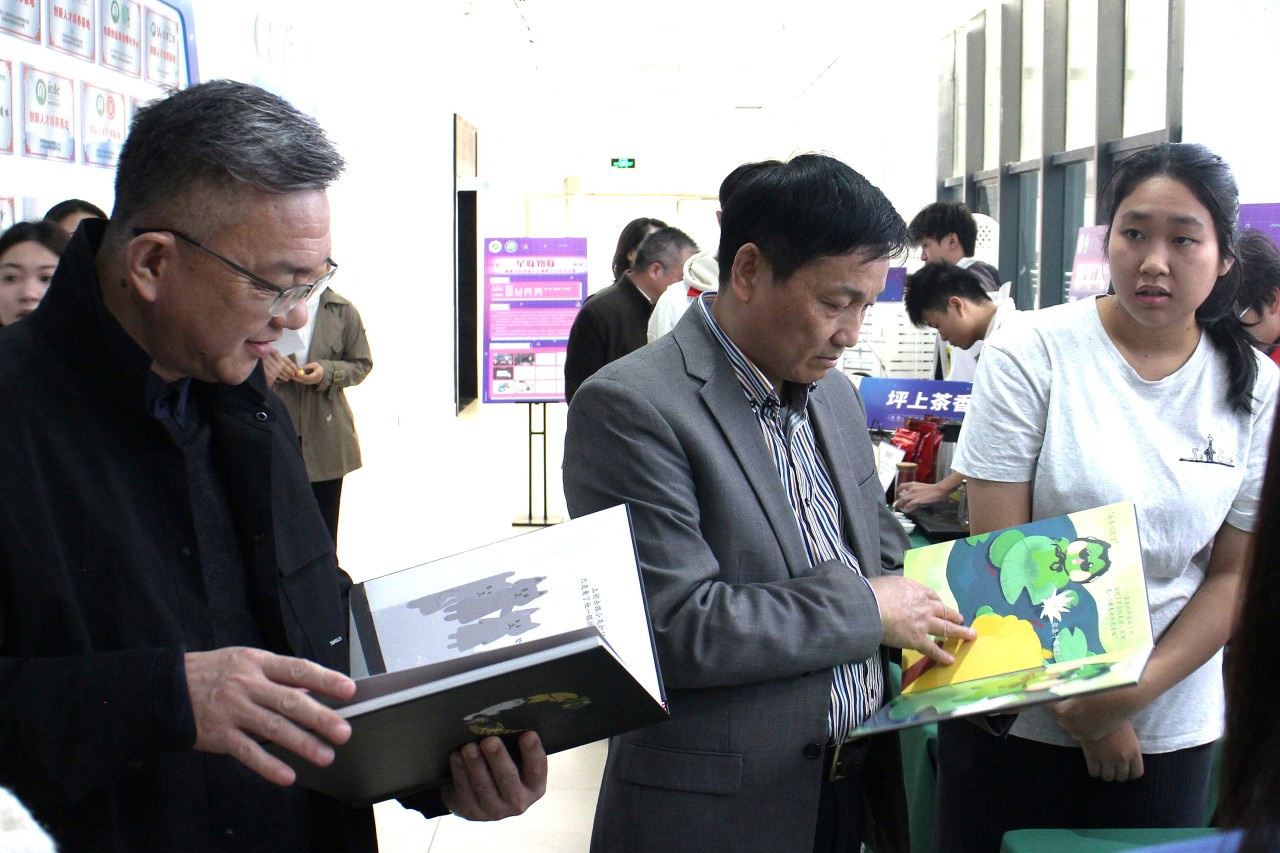 众人先踏入创新创业成果展区域,“自救方舟・少年行”项目以游戏玩具教中小学生自救,如地震积木、火灾拼图,使孩子在玩中学会多种实用自救技能,打造趣味自救平台。“坪上茶香”项目深入挖掘红色文化与茶文化融合契机,以实地走访与文化体验开辟传承创新路,让古老茶香于新时代绽放新韵;《不一样也能做朋友》项目借助绘本探索幼儿心理健康促进之道,为幼儿心灵成长筑牢根基;“潮汕铁枝木偶 DIY 换装玩具”项目将传统工艺与现代创意结合,为传统工艺传承开拓新径并丰富文创玩具市场;“红鹰消防志愿队”用化学实验在城中村科普消防,实验直观有趣,于多地开展,提升居民消防意识与自救力,尽显公益创新。这些项目充分展现学校创新创业教育的斐然成果与师生的创新风貌。
