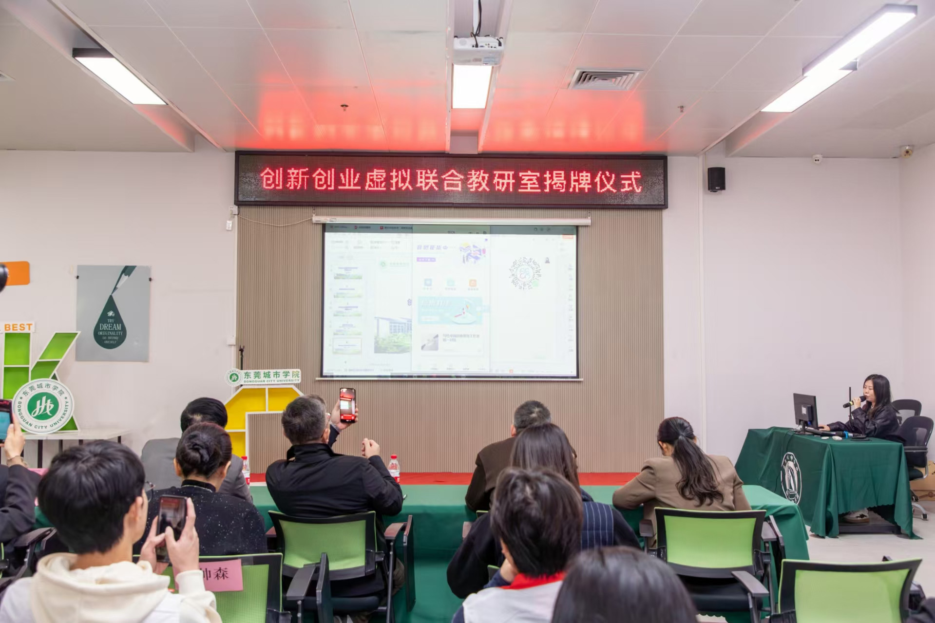 随后,在全场瞩目中,“创新创业虚拟联合教研室” 揭牌仪式隆重举行,红绸飘落,此创新平台正式起航,它将成为连接理论与实践、学校与社会的桥梁,为创新创业教育注入新活力。