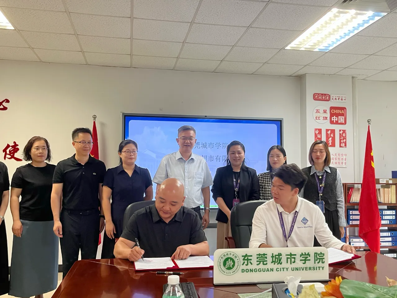 会议最后,东莞山姆超市有限公司总经理刘宏与商学院副院长肖文锋签订校企合作协议并合影留念。