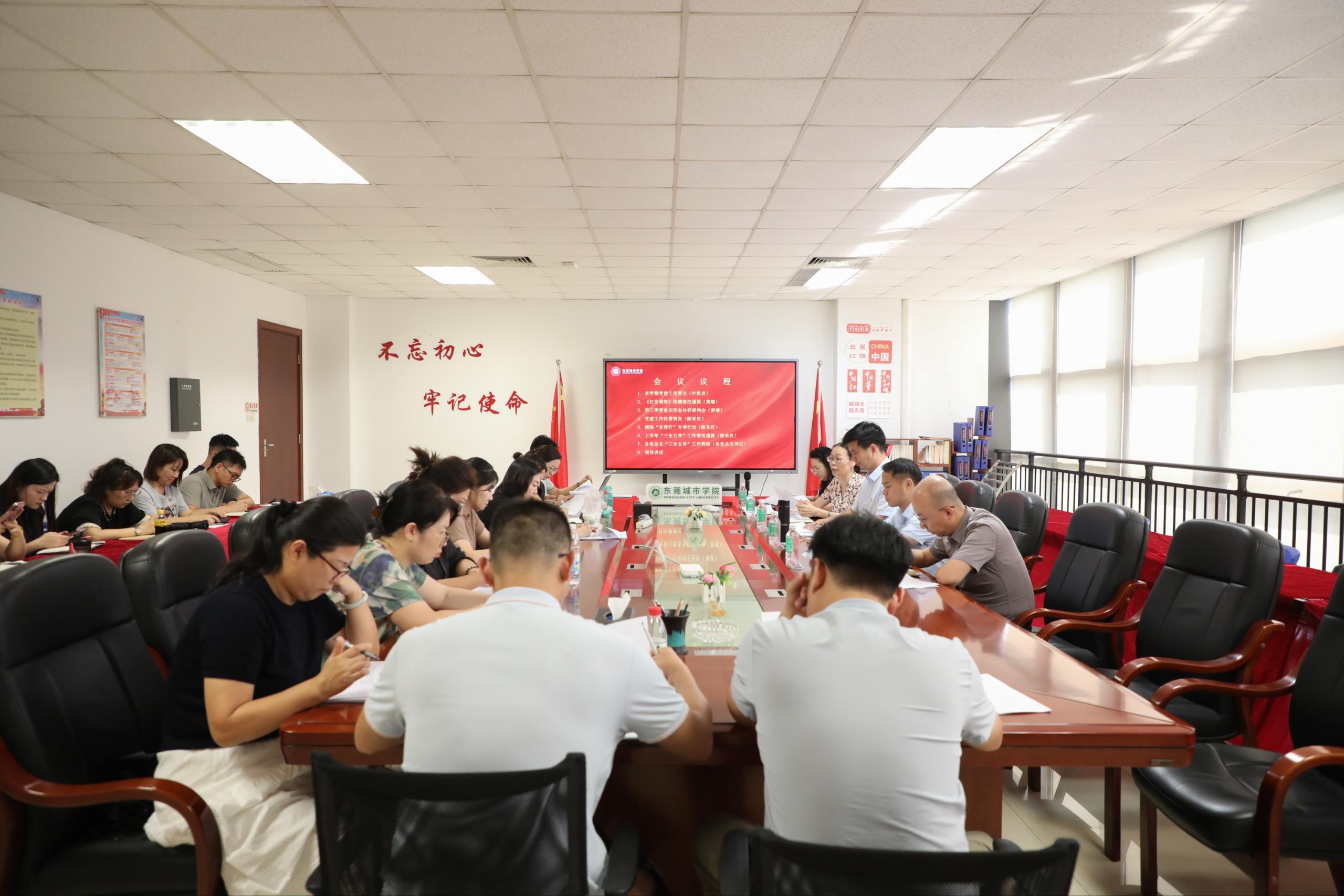 魏东初书记强调要立足学校发展实际,将党建工作与中心工作深度融合。他指出,新学期党建工作要突出“三个聚焦”:一是以党的政治建设为统领,强化理论武装,筑牢思想根基,确保党中央决策部署在学校落地生根;二是以融合发展为导向,推动党建工作与教学科研、人才培养、社会服务深度融合;三是以品牌建设为抓手,聚焦“红色城院”、城院“东莞行”、“三全五导”成长导师制等工作,形成可示范、可推广的党建标杆成果。