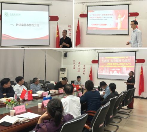 在交流研讨环节,教研室主任倪合良汇报了本学期工作计划,区淦波老师分享了“晋江经验”学习心得。陈海华老师就“坚持以人民为中心”章节进行示范说课,其创新的教学设计为全体教师提供了有益借鉴。