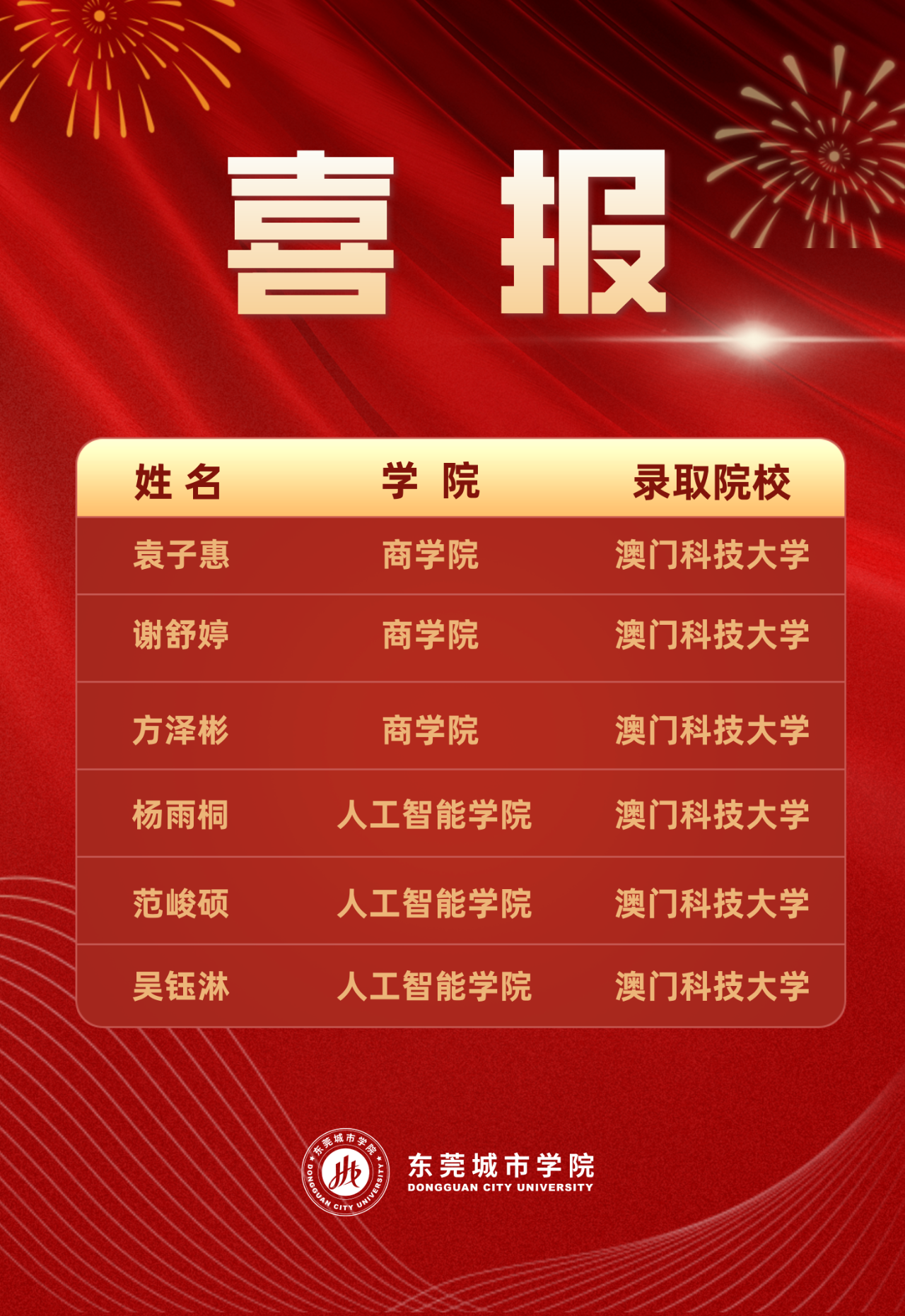 近日,BV伟德官方网站喜报频传,来自商学院与人工智能学院的6名优秀学子,凭借扎实的专业功底与出色的综合素养,成功获得澳门科技大学硕士研究生录取资格,充分展现了伟德官网国际化人才培养的显著成效。