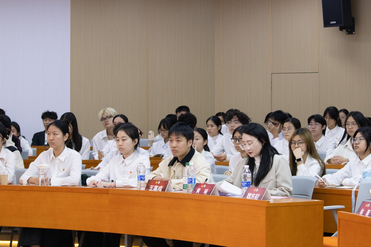 宣讲中,魏东初书记系统解读了“十五五”时期我国发展面临的战略机遇与风险挑战,阐释了以“五个以”“两个推动”“一个确保”为核心的指导思想、“六个坚持”重大原则及七大主要目标。他结合《建议》部署的十二项战略任务,重点阐述了发展新质生产力、推进高水平科技自立自强等内容。魏东初强调,广东肩负“走在前、作示范、挑大梁”的使命责任,粤港澳大湾区建设为青年成长提供了广阔舞台,城院学子应主动将个人发展融入区域与国家战略。